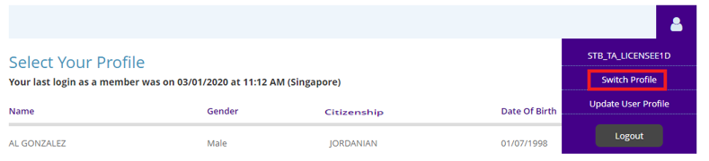 - If logged in user have multiple user profiles (i.e. both individual and company), he/she can switch his/her profile.