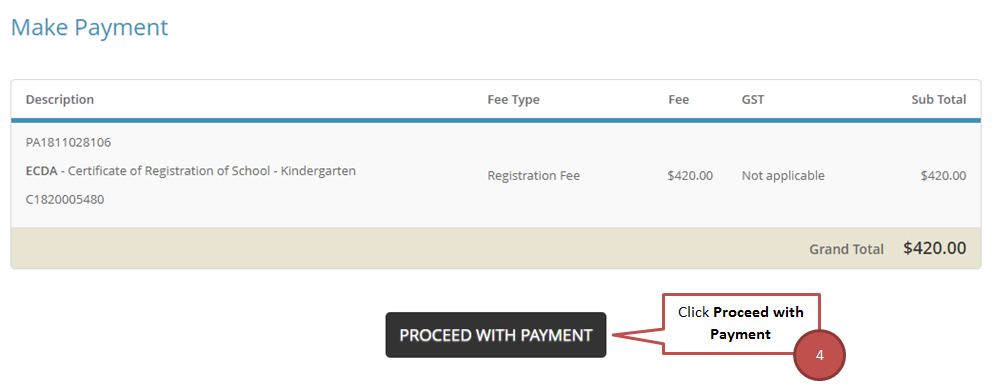 Step 2: View the payment details and click on ‘Proceed with Payment’. You will be redirected to PayPal for online payment.